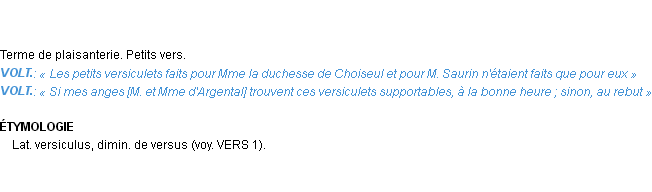 Définition du mot « versicules ou versiculets » par Emile Littré (édition de 1876).