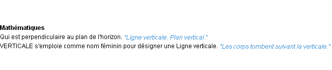 Ancienne définition académique pour le terme « vertical » (parue en 1835).