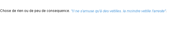 Définition issue du dictionnaire wiktionary pour le mot « vetille ».