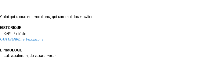 Définition de « vexateur » issue du Littré (Auteur Emile Littré, édité en 1876).