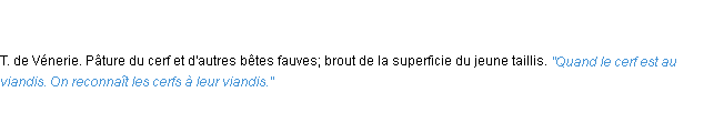 Signification éditée en 1876 pour le terme « viandis » par Emile Littré.