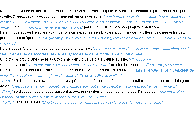 Ancienne signification éditée en 17962 pour le terme « vieil » par l’Académie Française.