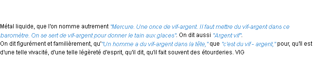 Ancienne définition « vif-argent » du dictionnaire académique Français, parution de l’année 1835.
