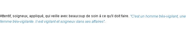 Signification éditée en 2010 par l’équipe de la-definition.fr.Merci à Maximilien et Désiré pour la numérisation du mot vigilant.