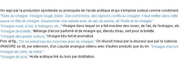 Ancienne définition de « vinaigre » de source académique (Académie Française, parution de 1798).