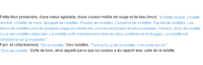 Ancienne définition de « violette » de source académique (Académie Française, parution de 1835).