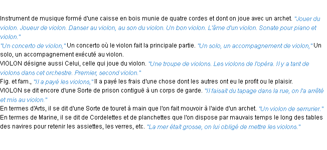 Signification parue en 2009 (source la-definition.fr).Merci à édith et Léonard pour la numérisation du mot violon.
