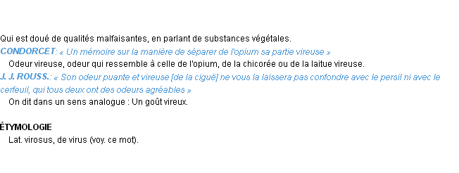 Définition de « vireux » de source académique (Académie Française, parution de 1932).