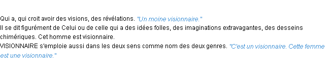 Définition de « visionnaire » de source académique (Académie Française, parution de 1932).