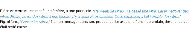 Signification éditée en 1932 pour le terme « vitre » par l’Académie Française.