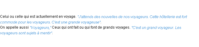 Signification du terme « voyageur », parution de 1932, dictionnaire académique Français.