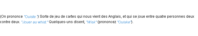 Définition issue du dictionnaire wiktionary pour le mot « whist ».Merci à Paule et Noel pour la numérisation du mot whist.