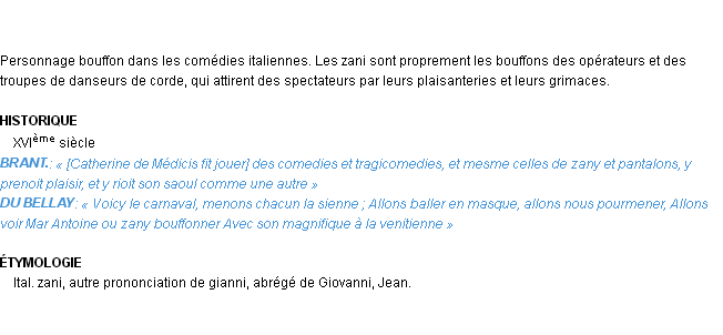 Signification du terme « zani », parution de 1876 (dictionnaire le Littré).