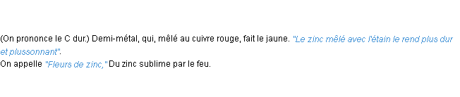 Définition du mot « zinc » par l’équipe de la-definition.fr (édition de 2011).Merci à Madeline et Christelle pour la numérisation du mot zinc.