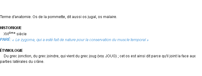 Signification du terme « zygoma », parution de 1932, dictionnaire académique Français.